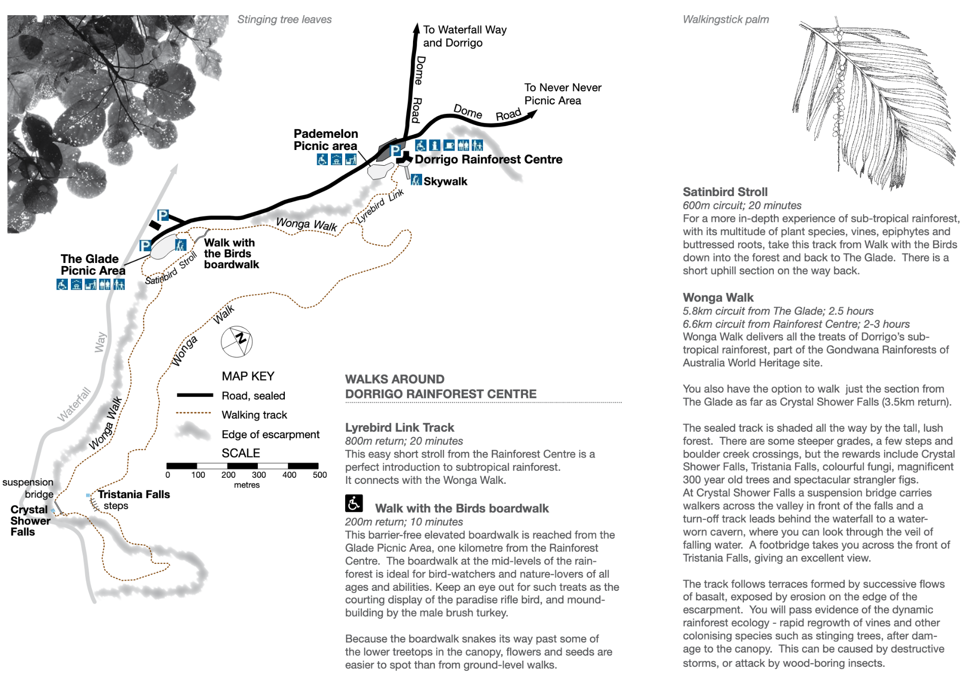 Dorrigo National Park kenmerkt zich door veel groen. Het gebied bestaat merendeels uit regenwoud. Grootste gedeelte van de ochtend lopen we dan ook door de bomen die overwoekerd zijn met groen. De strangler fig (wurgvijg) komen we ook veel tegen en nemen hele bomen over in het bos.
